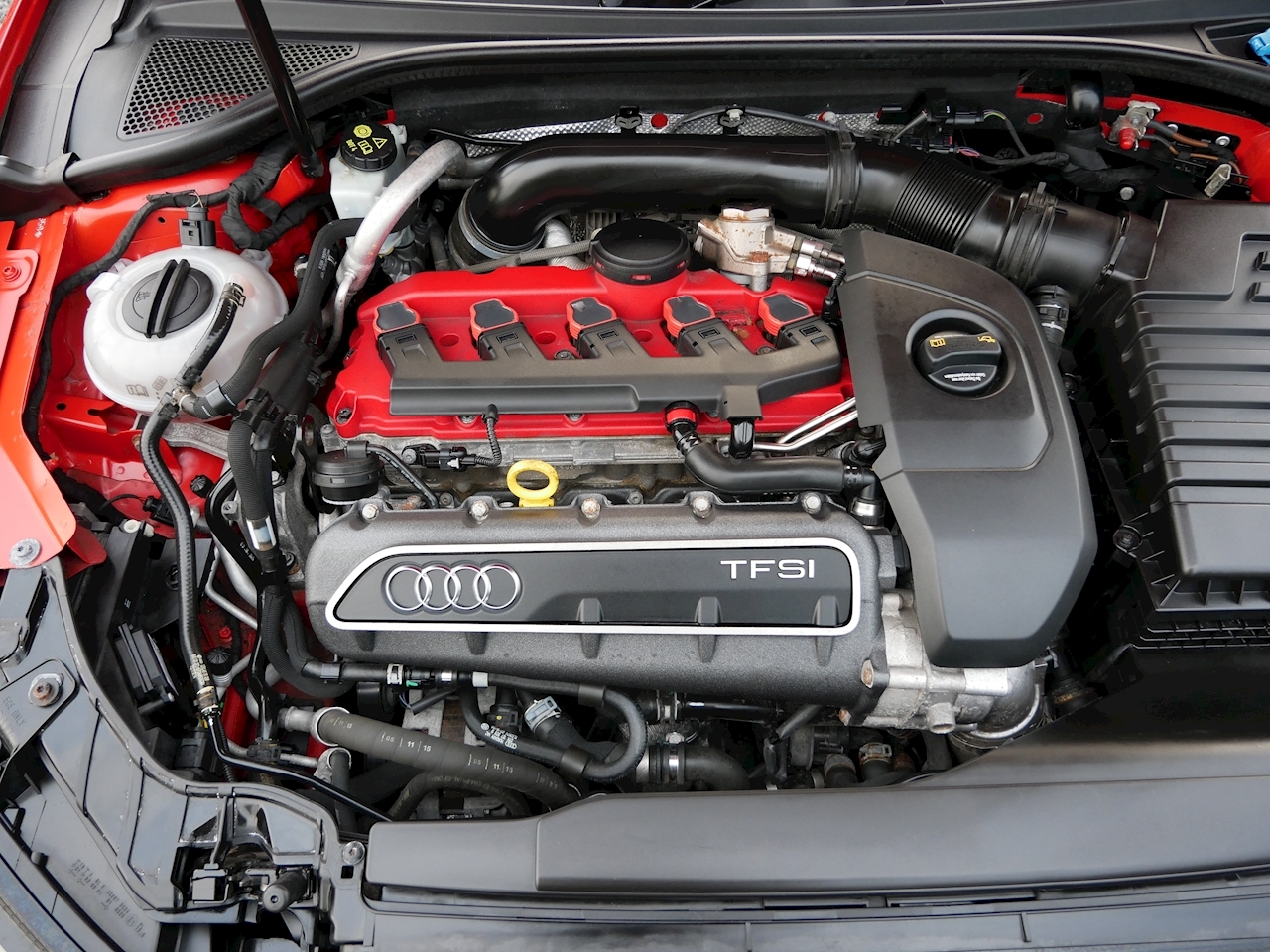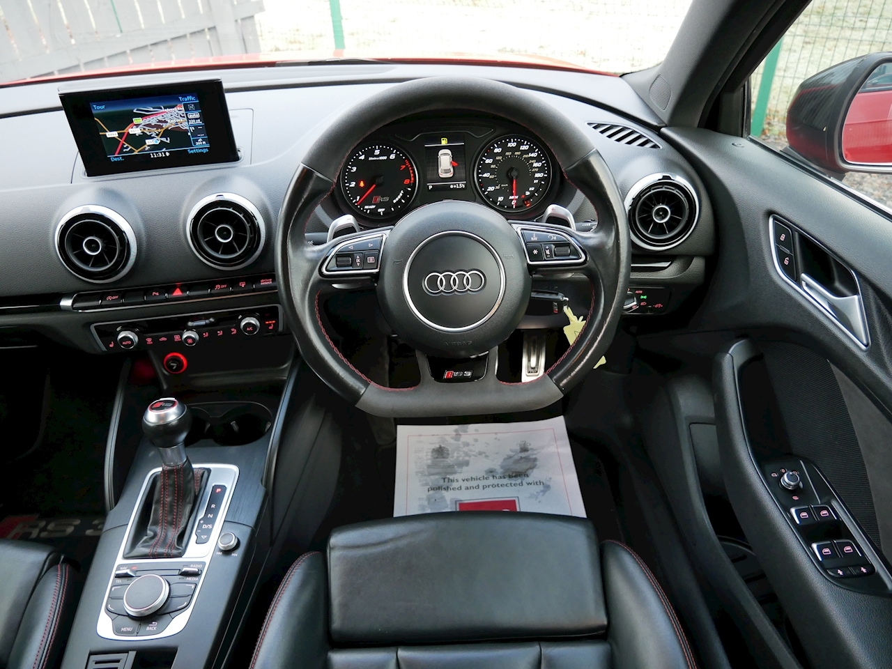 Such a great looking Audi RS3 2.5 TFSI Sportback S Tronic Quattro shown here in Catalunya Red Metallic with Black Styling Pack and Tornado Red Calpers. This 2016 example has covered just over 48k Miles It has some desirable spec options and is in great condition inside and out.